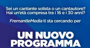 Continuano le selezioni per nuova produzione musicale di “Freemantlemedia” che produce importanti trasmissioni tv, come “Italia’s Got Talent”. Si cercano solisti, cantautori tra i 16 e i 30 anni. Per candidarsi inviare una vostra performance e i vostri dati, all’indirizzo email: casting@freemantlemedia.it