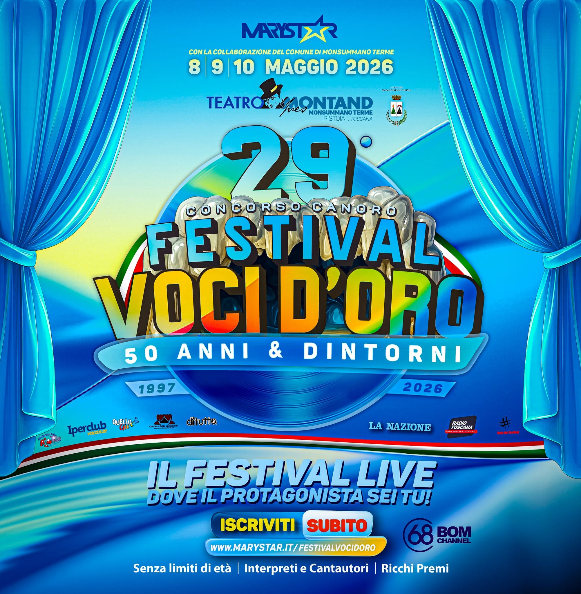 Invia la tua candidatura: se sarai selezionato, salirai sul palco del Teatro Yves Montand a Monsummano Terme (Pistoia) l’ 8, 9 e 10 Maggio 2026.
