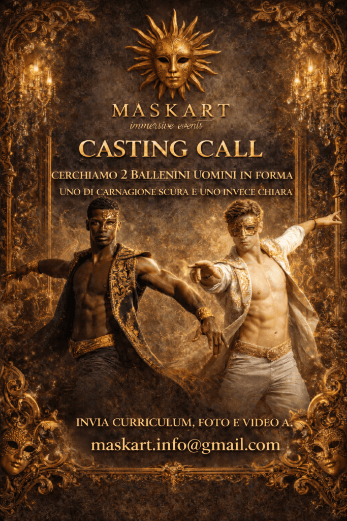 La Compagnia Teatrale Maskarte, cerca 2 ballerini uomini in ottima forma fisica per un evento immersivo a Roma denominato “Maskart Immersive”